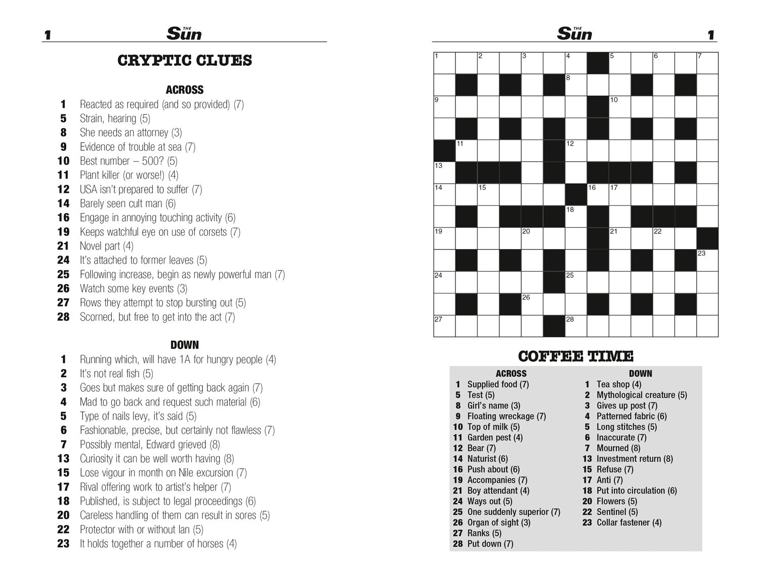 The Sun Two-Speed Crossword Collection - amazon.com Sep 01, 2008 · The Sun Two-Speed Crossword Collection. Paperback – September 1, 2008. The Sun presents this corker of a collection of its unique two speed crossword – Britain’s bestselling crossword. The two-speed crosswords appear daily in The Sun and what is unique about them is that each crossword has a set of cryptic clues and coffee-time clues (definition-only clues) so you can choose if you want to take your time to solve the crossword or if you want a speedy conclusion.